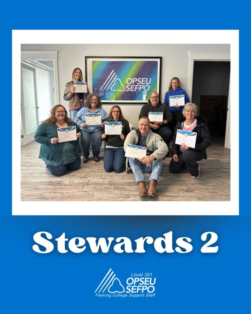 Congratulations to the Ontario Public Service Employees Union (OPSEU) /SEFPO #Local351 and #Local352 members who completed Stewards 2 training earlier this March. Stewards are often the first line of support for workers facing issues on the job such as defending the contract, supporting coworkers, and making sure management is held accountable.